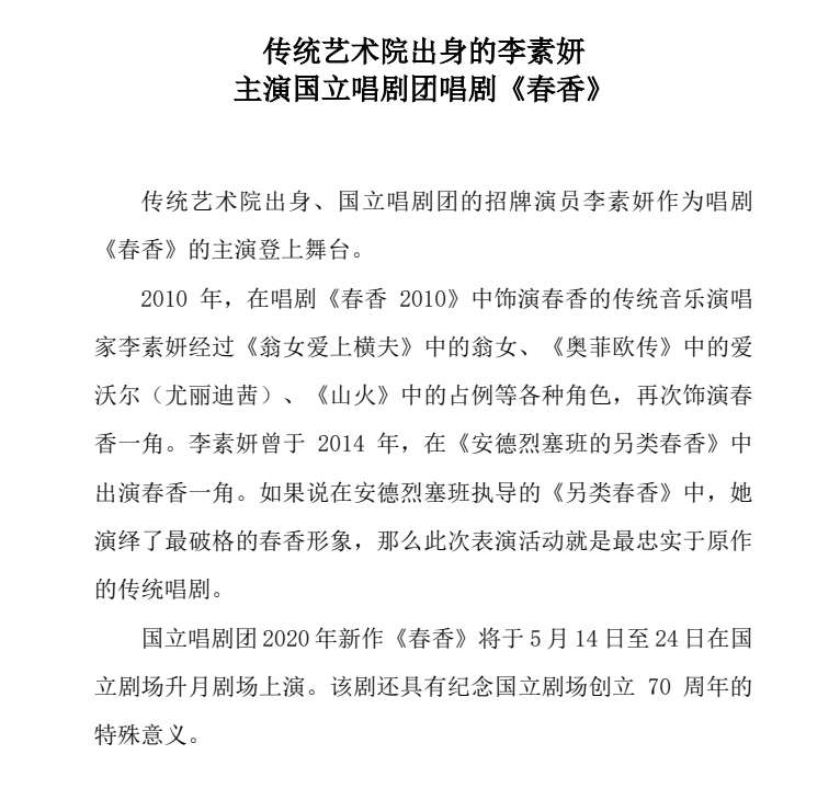 传统艺术院出身的李素妍主演国立唱剧团唱剧《春香》