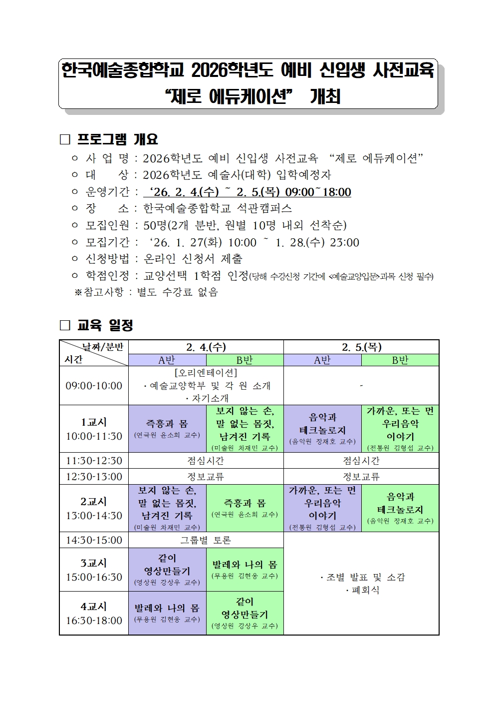 260126-한예종 2026 제로 에듀케이션 실시.hwp ( 1428992 byte )