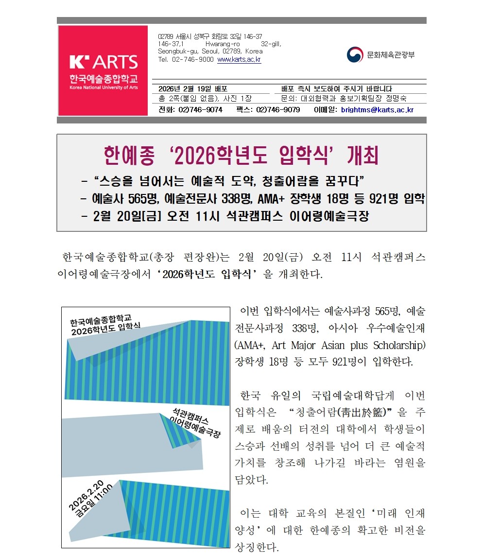 260219-한예종 2026학년도 입학식 개최.hwp ( 536576 byte )