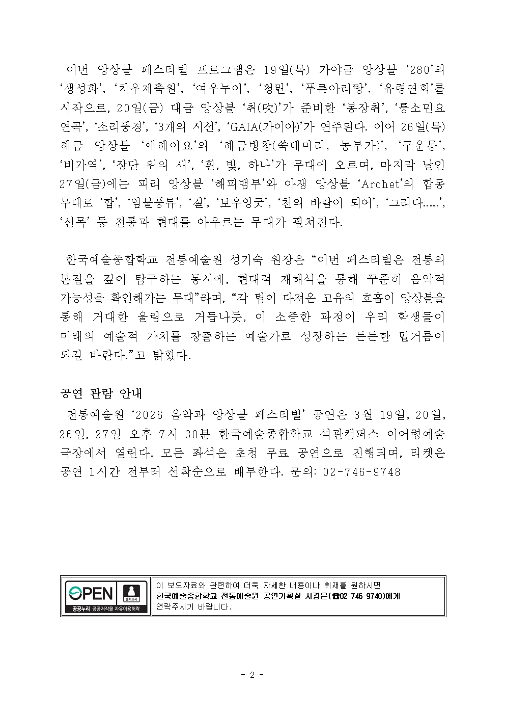 260311-전통예술원 2026 음악과 앙상블 페스티벌 개최_m.hwp ( 785920 byte )
