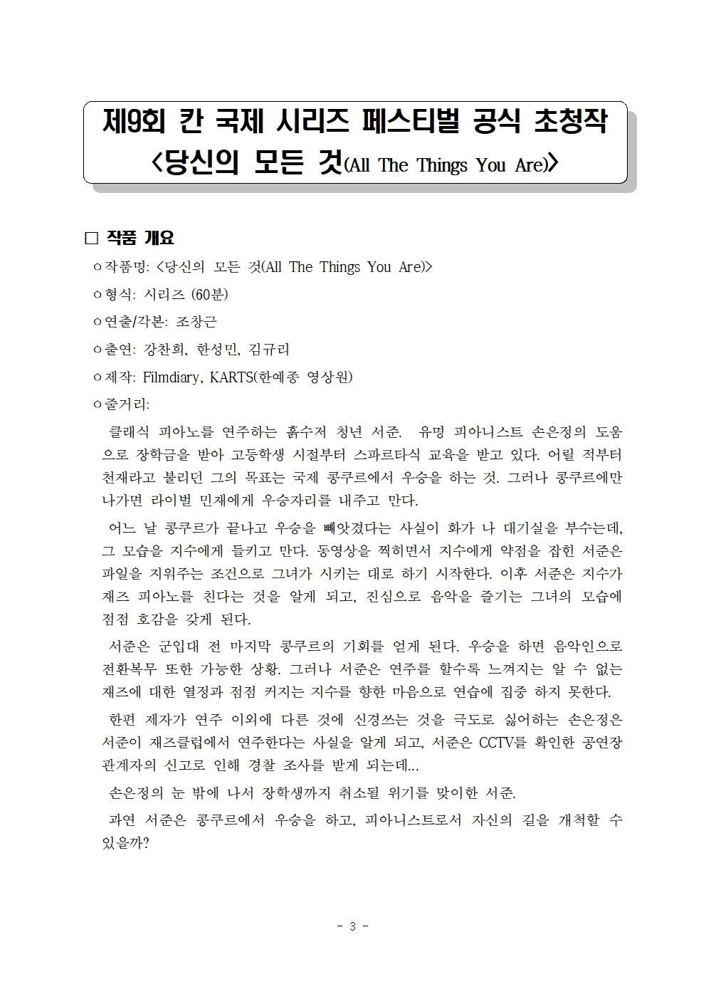 영상원 당신의 모든 것 제9회 칸 국제 시리즈 페스티벌 공식 초청.hwp ( 733696 byte )
